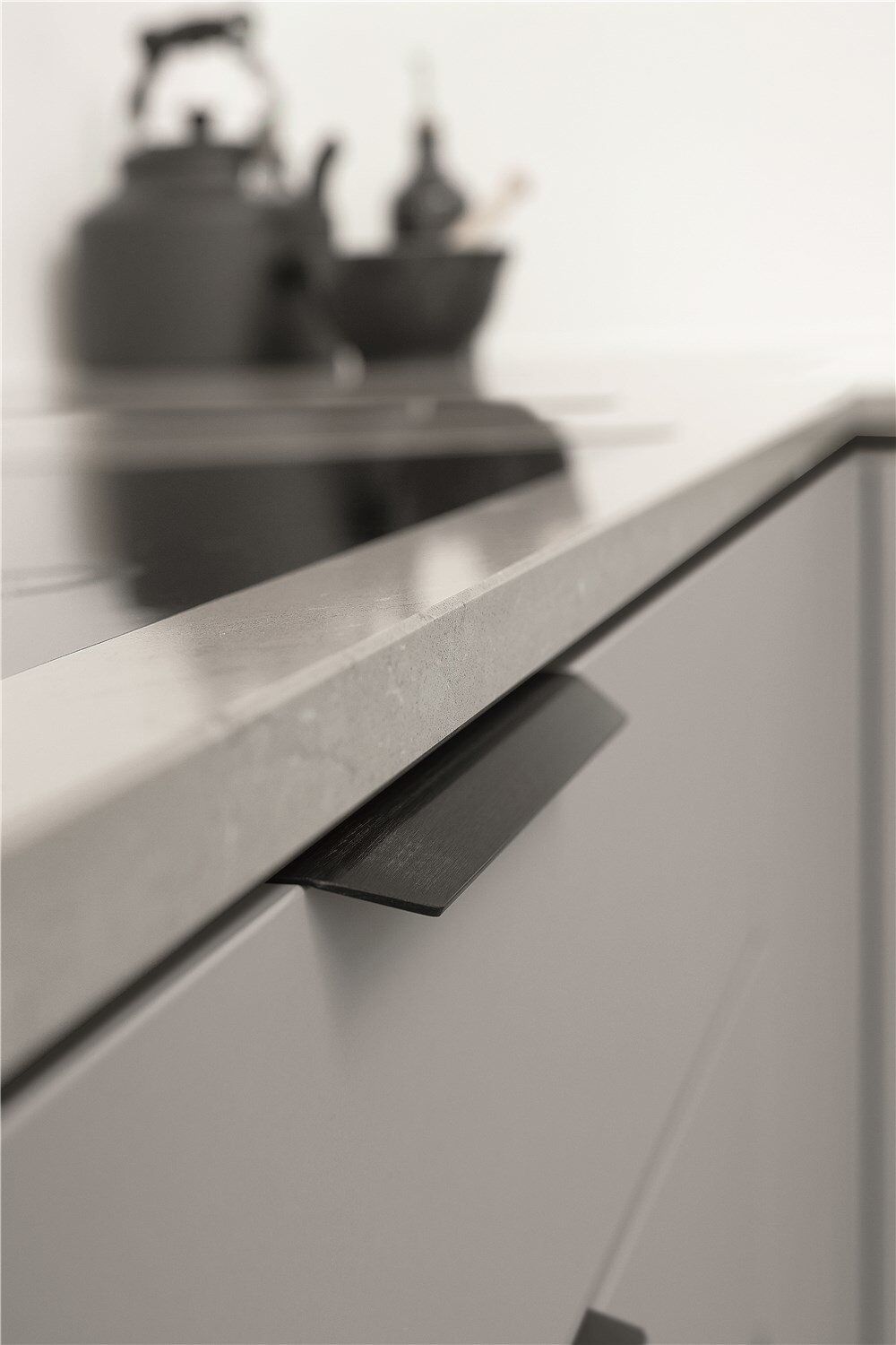 De profiel greep bevestig je aan de achterzijde van de lade of een deur.