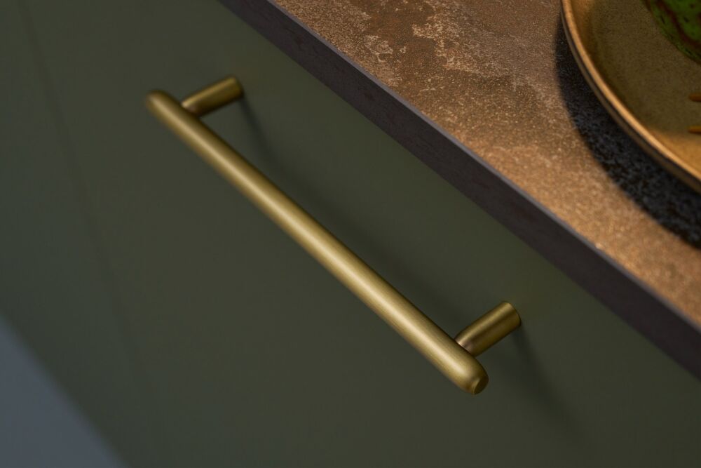 Rechte greep mat messing leverbaar in 4 boorafstanden