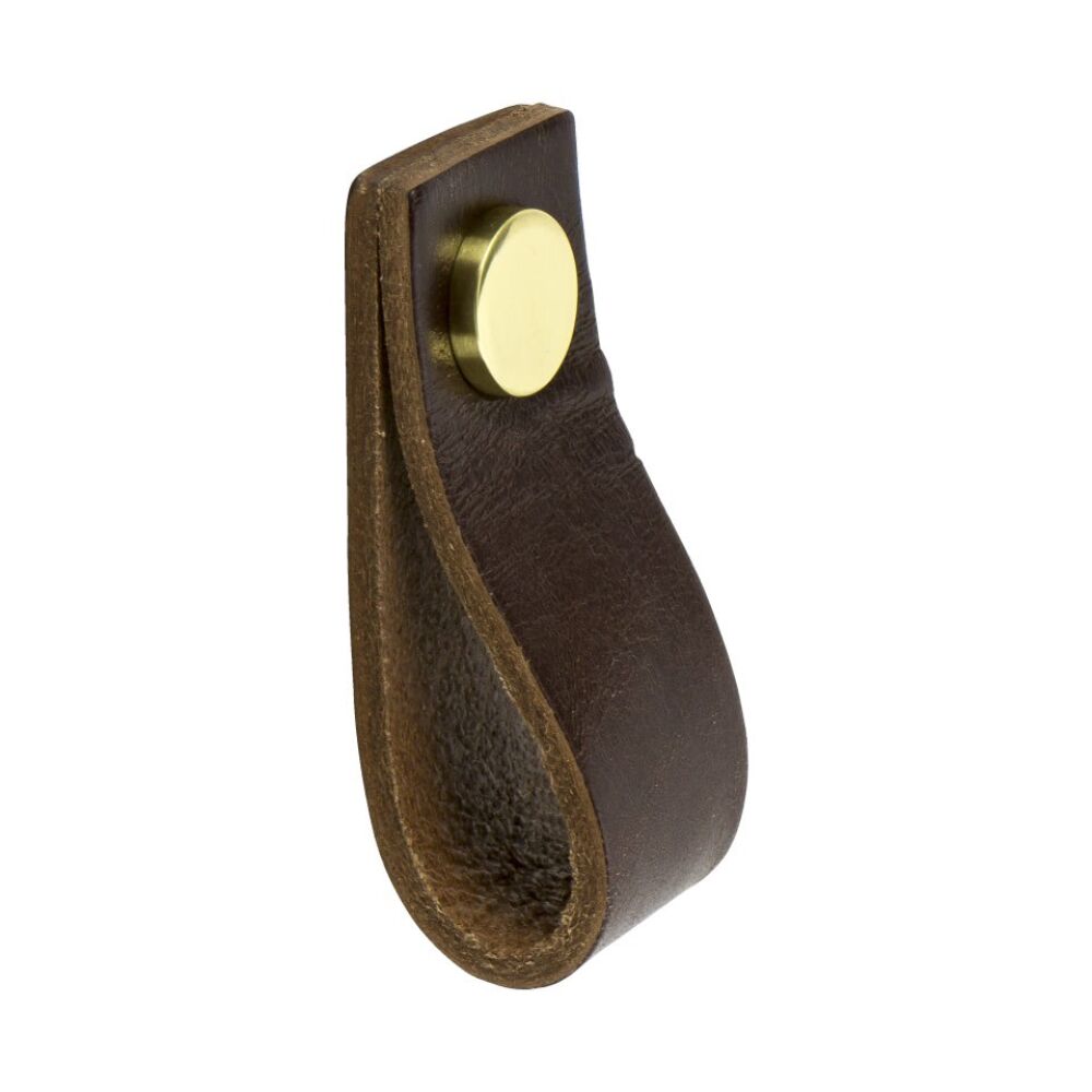 Leren Lus greep 65x25x25mm bruin / messing