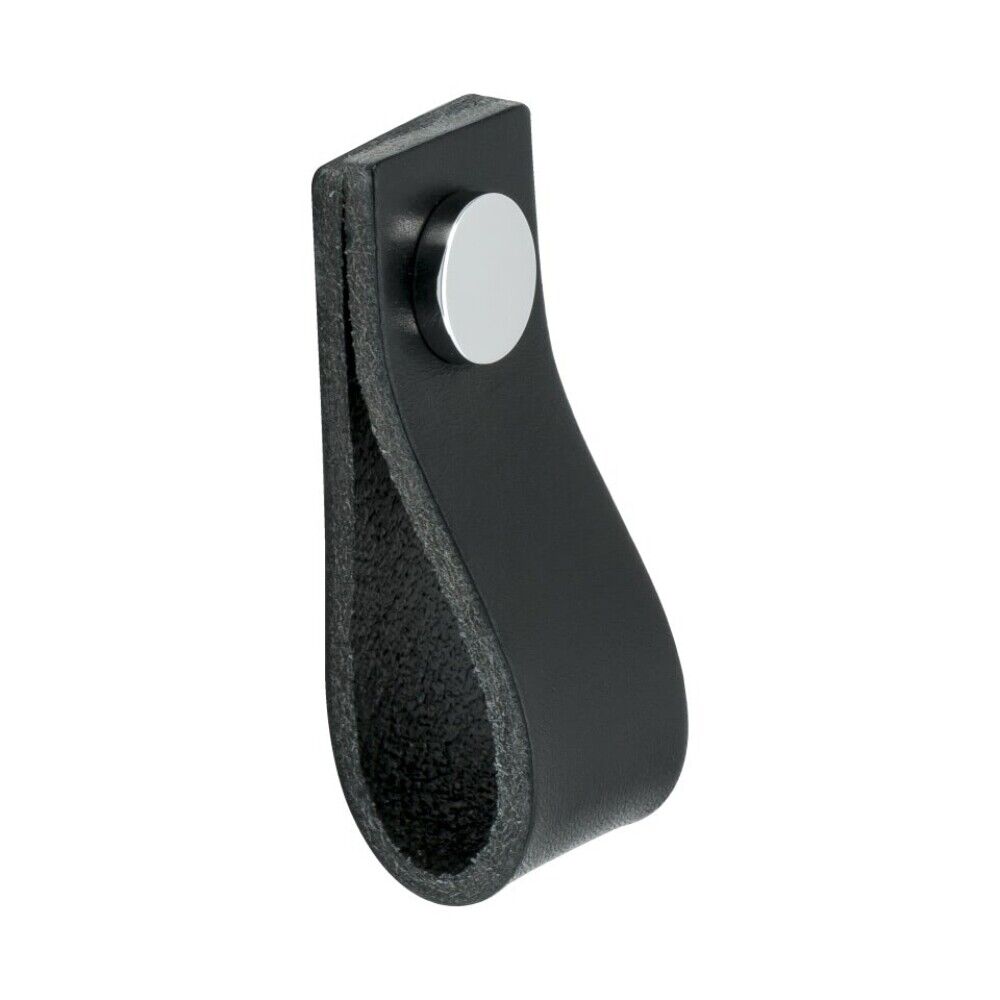 Leren Lus greep 65x25x25mm zwart glimmend chroom