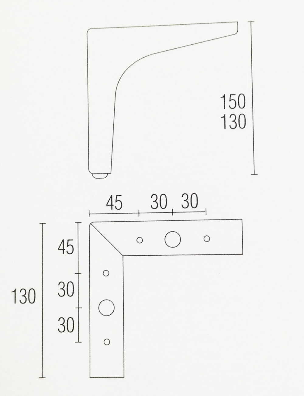 Meubelpoot 130 of 150mm hoogte gepolijst plaat