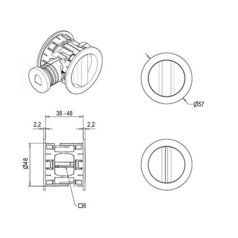 Schuifdeurslot rond Ø 57 Mat zwart