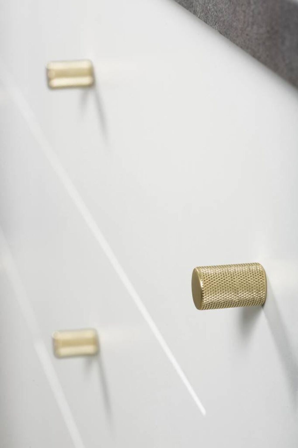 Het messing geborstelde materiaal is niet alleen stijlvol, maar ook duurzaam en gemakkelijk schoon te houden. Het gekartelde design van de knop zorgt voor een comfortabele grip, waardoor het eenvoudig is om de knop te bedienen. Bij de levering zijn de nodige schroeven inbegrepen, zodat u de knop snel en eenvoudig kunt monteren op uw lade of kast.