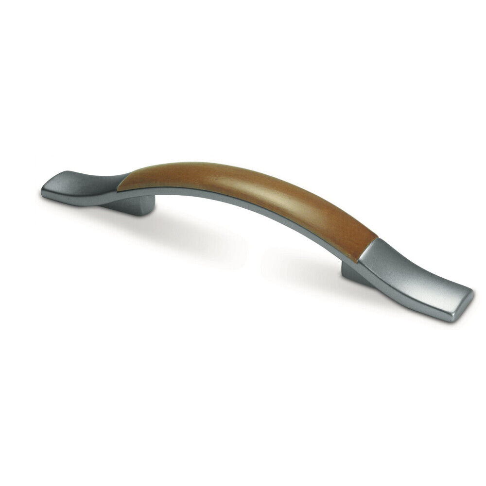 Tobo greep chromo look beuken leverbaar in de maten 96X180mm of 128X240mm de hoogte van de greep is 28mm