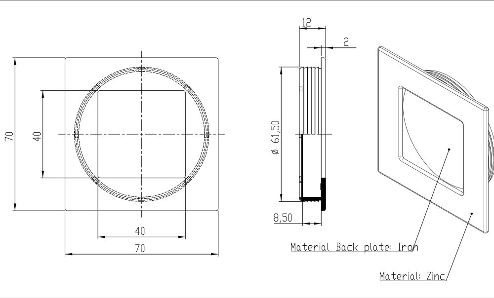 Vierkante infreesgreep 70x70X10mm gl.chroom